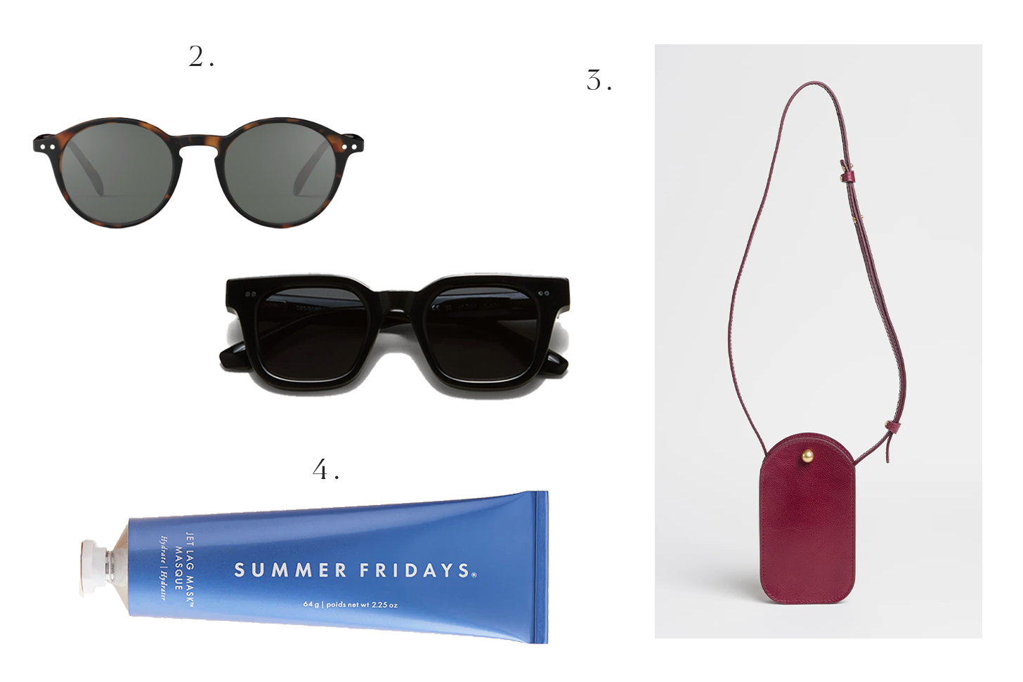 One to two pairs of great sunnies always come with me. Make sure they’re a pair you love (not too trendy), and wear on repeat. (Also: I’m known to avoid and seek light exposure in order to beat jet lag especially during Asia travel, so you’ll sometimes see me in sunglasses at breakfast). I love these and own these.